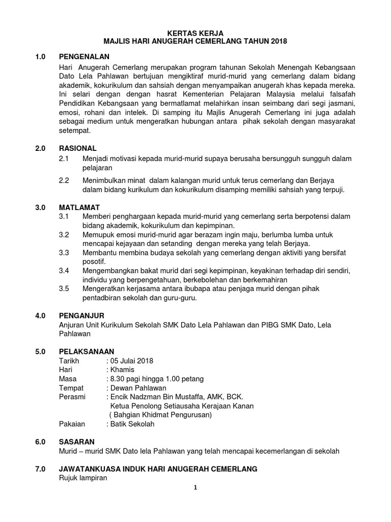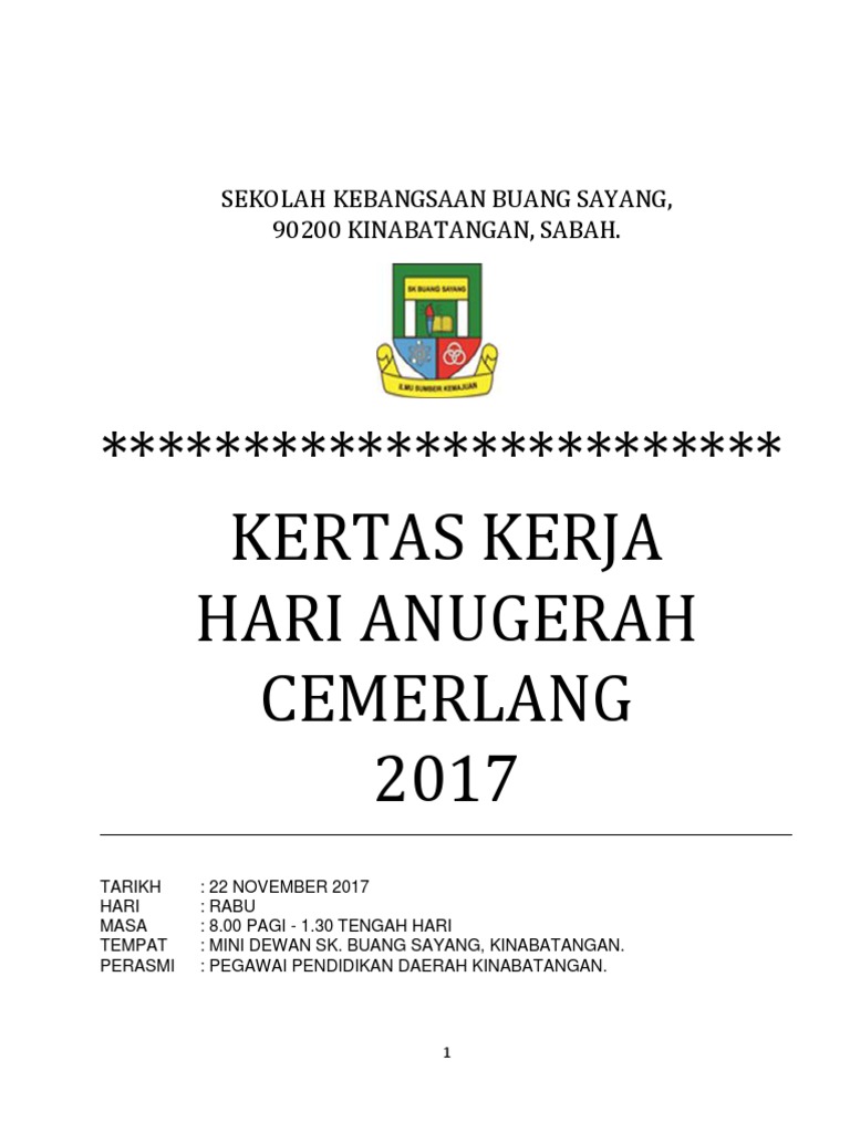 Kertas Kerja Hari Anugerah Cemerlang : Panjang surat lamaran kerja umumnya dapat muat (fit) dalam satu sisi kertas tanpa tulisan terlihat terlalu penuh atau padat.. Kertas kerja program pembentukan sahsiah diri. 11 mei 2014/11 rejab 1435h (ahad) tema : Persembahan hari anugerah cemerlang skkm 2016 (part 2). Perusahaan pt arta boga cemerlang membuka lowongan untuk jabatan satpam lokasi pekerjaan semarang. Ntv7malaysia official 3 weeks ago.